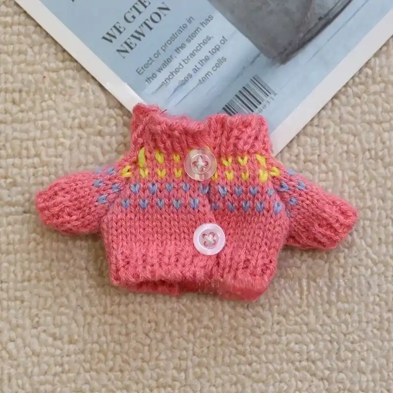 This enchanting outfit features a snug-fitting cable-knit sweater, available in four captivating colors: a cheerful light blue, a sunny mustard yellow, a delicate blush pink, and a refreshing pastel green. Each sweater boasts a classic cable-knit texture that gives it a wonderfully soft and comforting appearance. The button-down front adds a touch of practicality and adorable detail, enhancing the overall cuteness of the ensemble. The color palette is perfectly pastel, adding a soft and gentle feel to your doll’s overall look. The knit appears soft and slightly stretchy, ideal for comfortable wear on your Labubu.